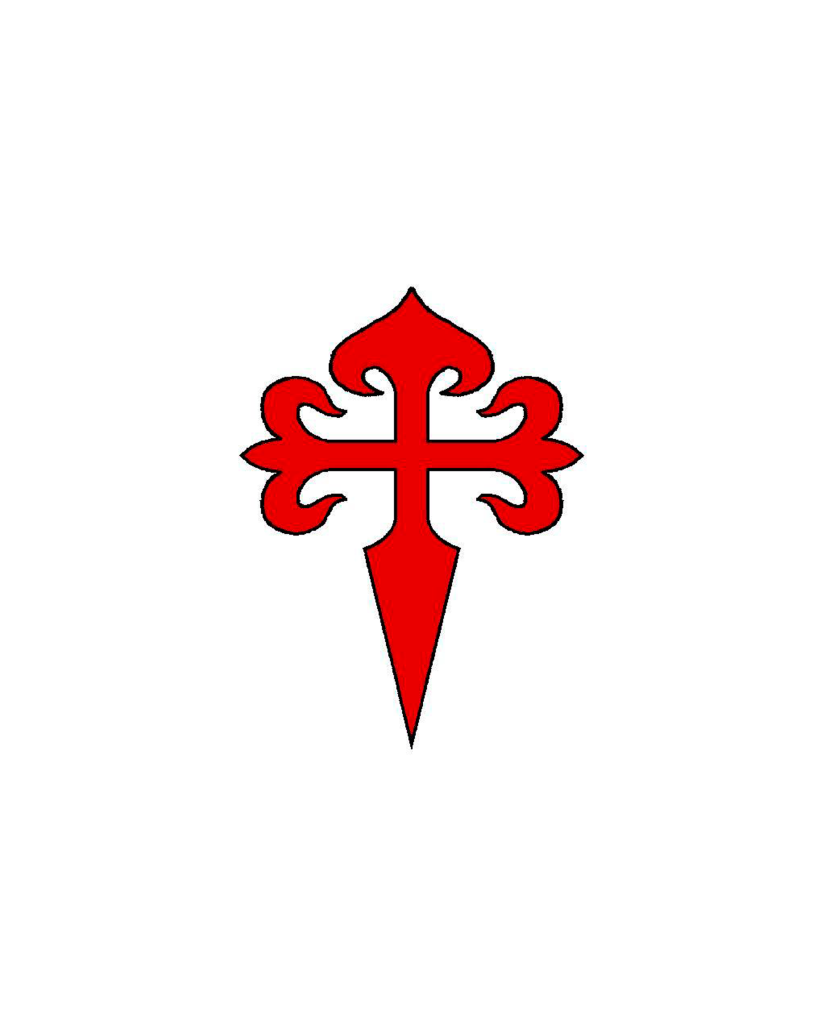 Uma cruz da Ordem de Santiago, de vermelho.