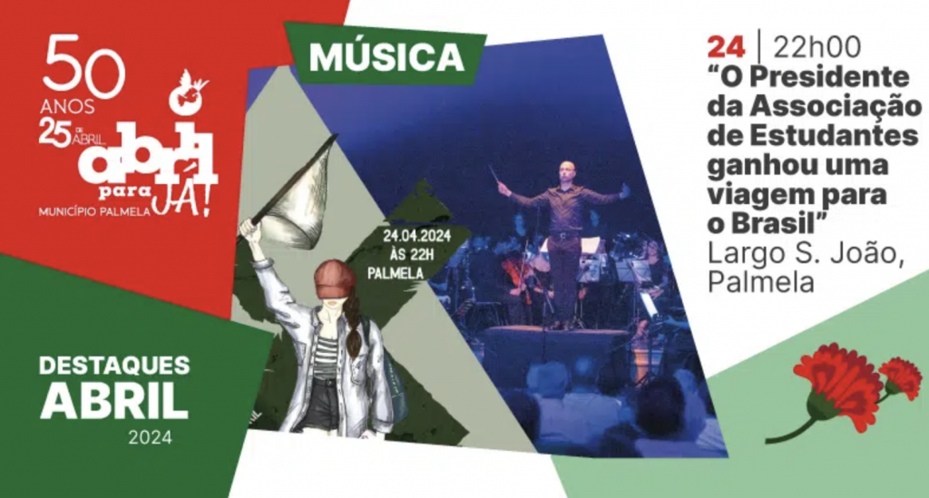 Destaques de Abril – Música By admin|2024-04-24T08:24:46+00:00Abril 24th, 2024|Freguesia| View Larger Image Share This Post With Others! FacebookTwitterLinkedInWhatsappGoogle+PinterestEmail Related Posts Procuramos calceteiro Gallery Procuramos calceteiro Outubro 2nd, 2025 | 0 Comments Palmela, terra de vinhos e tradição | 62º edição da Festa das Vindimas Gallery Palmela, terra de vinhos e tradição | 62º edição da Festa das Vindimas Agosto 26th, 2025 | 0 Comments Edital nº8 RE 20205 Gallery Edital nº8 RE 20205 Agosto 13th, 2025 | 0 Comments Marchas Populares celebram São Pedro em Palmela Gallery Marchas Populares celebram São Pedro em Palmela Junho 25th, 2025 | 0 Comments
