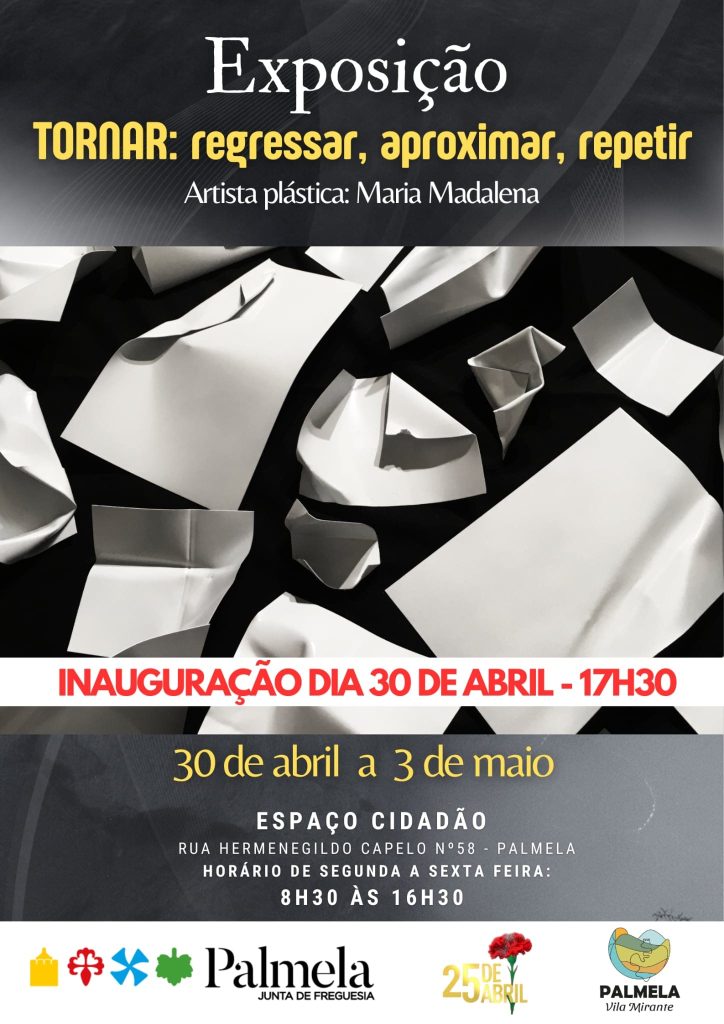 Entre os dias 03 de abril e 3 de maio, estará patente no Espaço Cidadão de Palmela a exposição “TORNAR: regressar, aproximar, repetir”, da artista plástica Maria Madalena.