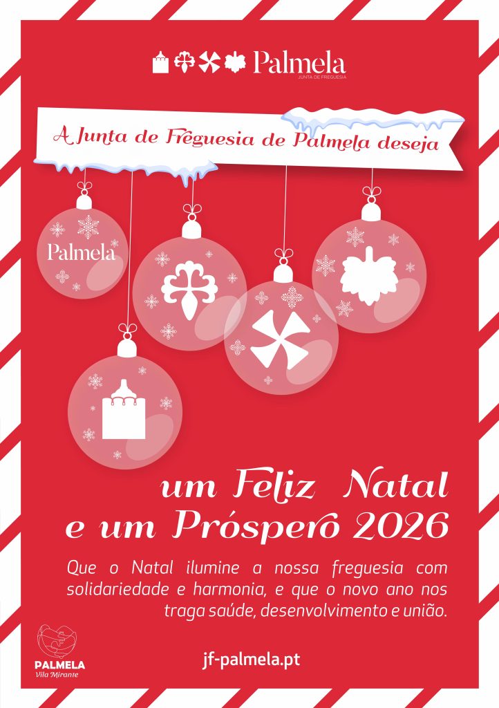 Postal de Natal 2025 By admin|2025-12-22T10:53:04+00:00Dezembro 22nd, 2025|Destaques, News| View Larger Image Share This Post With Others! FacebookTwitterLinkedInWhatsappGoogle+PinterestEmail Related Posts Benção das fogaças – 15 de Janeiro – 18 horas Gallery Benção das fogaças – 15 de Janeiro – 18 horas Janeiro 7th, 2026 | 0 Comments IV Concurso de Fotografia “Sítios e Recantos de Palmela” Gallery IV Concurso de Fotografia “Sítios e Recantos de Palmela” Janeiro 6th, 2026 | 0 Comments Tolerância de Ponto – 2 de Janeiro Gallery Tolerância de Ponto – 2 de Janeiro Dezembro 30th, 2025 | 0 Comments Neste Natal apoie os comerciantes da nossa Terra! Gallery Neste Natal apoie os comerciantes da nossa Terra! Dezembro 22nd, 2025 | 0 Comments